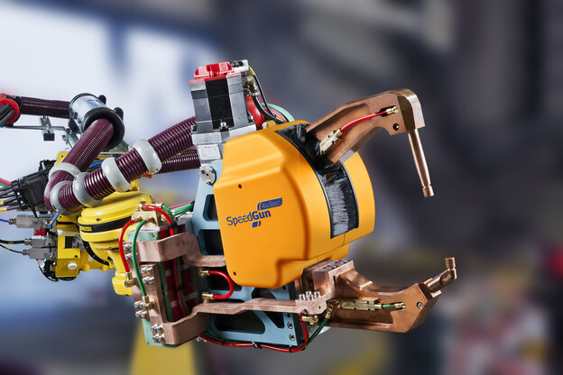 Thanks to its robust design, integrated servo drive, and minimal weight, the SpeedGun® enables the shortest cycle times in resistance spot welding, even for complex joining processes. The SpeedGun® is not a standalone product, but a modular part of the holistic SpeedLine® system concept. It only reaches its full potential when used in combination with SpeedCell®, SpeedFrame®, or SpeedFlex®.