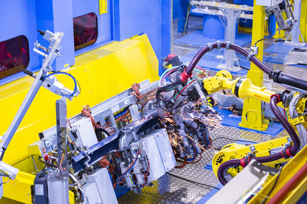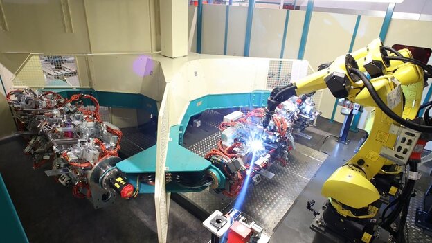 Der SpeedFrame® überzeugt durch hohe Traglasten und beschleunigt automatisierte Fügeprozesse, indem er Bauteilwechsel und Schweißoperationen entkoppelt. Als Schweißdrehtisch mit Zwei-Stationen-System trennt er Be- und Entladung von der Bearbeitung mit hoher Wiederholgenauigkeit und minimalen Nebenzeiten.