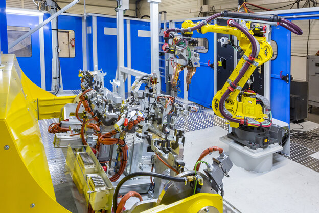 Dank kompakter Bauweise, hoher Tragfähigkeit und robotergeführter Steuerung ist der SpeedFrame® die perfekte Basis für anspruchsvolle Serienfertigung. Die Ansteuerung erfolgt direkt über den Robotercontroller, sodass zusätzliche Steuerungshardware entfällt.