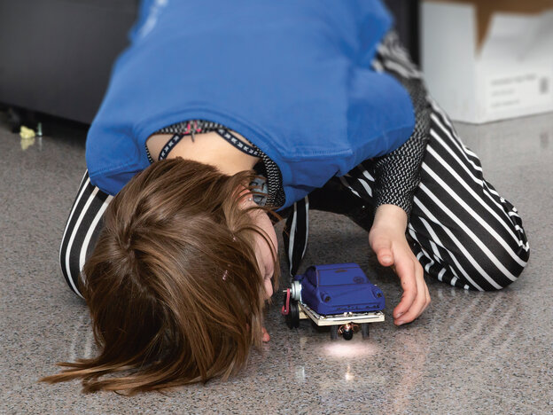 Für Schüler*innen der 8. und 9. Klasse. Er fährt auf zwei Rädern. Das ist noch einfach. Aber gleichzeitig muss er per App so ausgesteuert werden, dass er sich selbst ausbalanciert. Jede und jeder baut einen!
