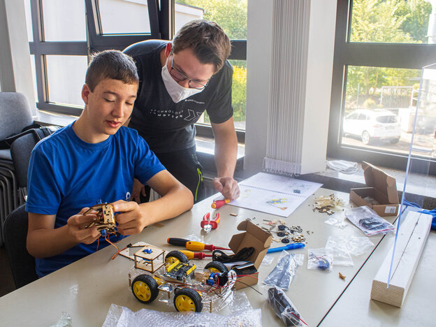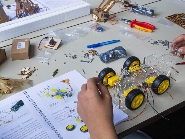 Ein Technikkurs in den Ferien? Über 3 Tage und freiwillig? Ja! Das Interesse ist gewaltig, weil hier Schüler*innen mit Interesse an Technik und Naturwissenschaft zusammenkommen und ihre Begeisterung ausleben. Am Ende hat man als Ergebnis ein funktionierendes Fahrzeug oder sogar einen kleinen Roboter in der Hand. Bis es so weit ist, gilt es einige knifflige Fragen zu klären. Lust?